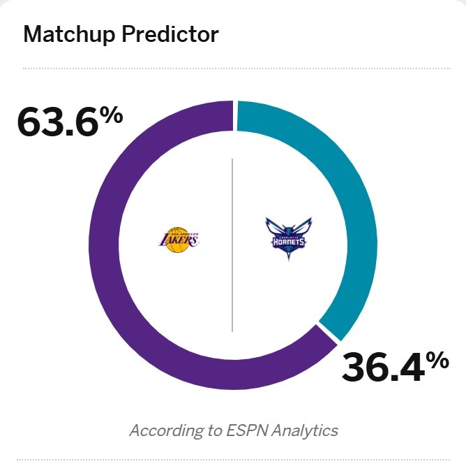 Easy to win? ESPN predicts Lakers vs. Hornets winning rate: Lakers 63.6%