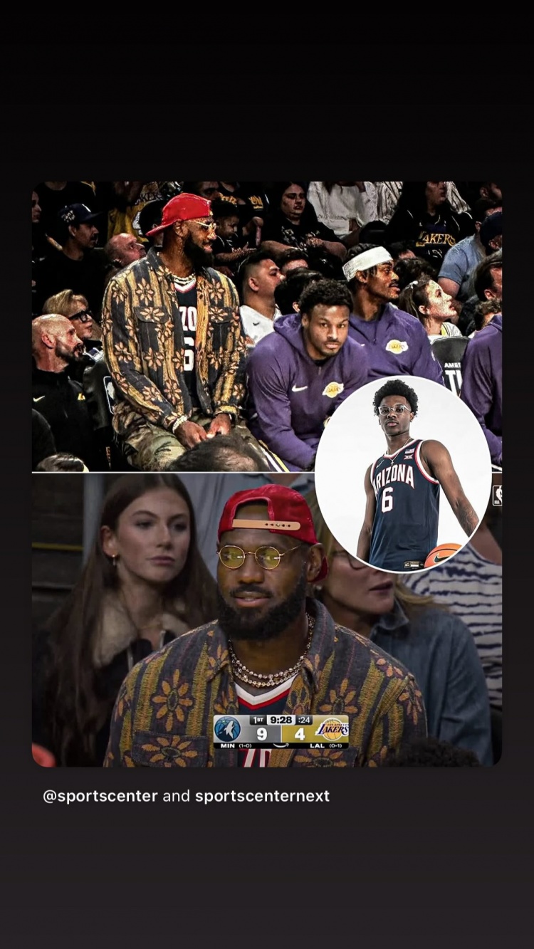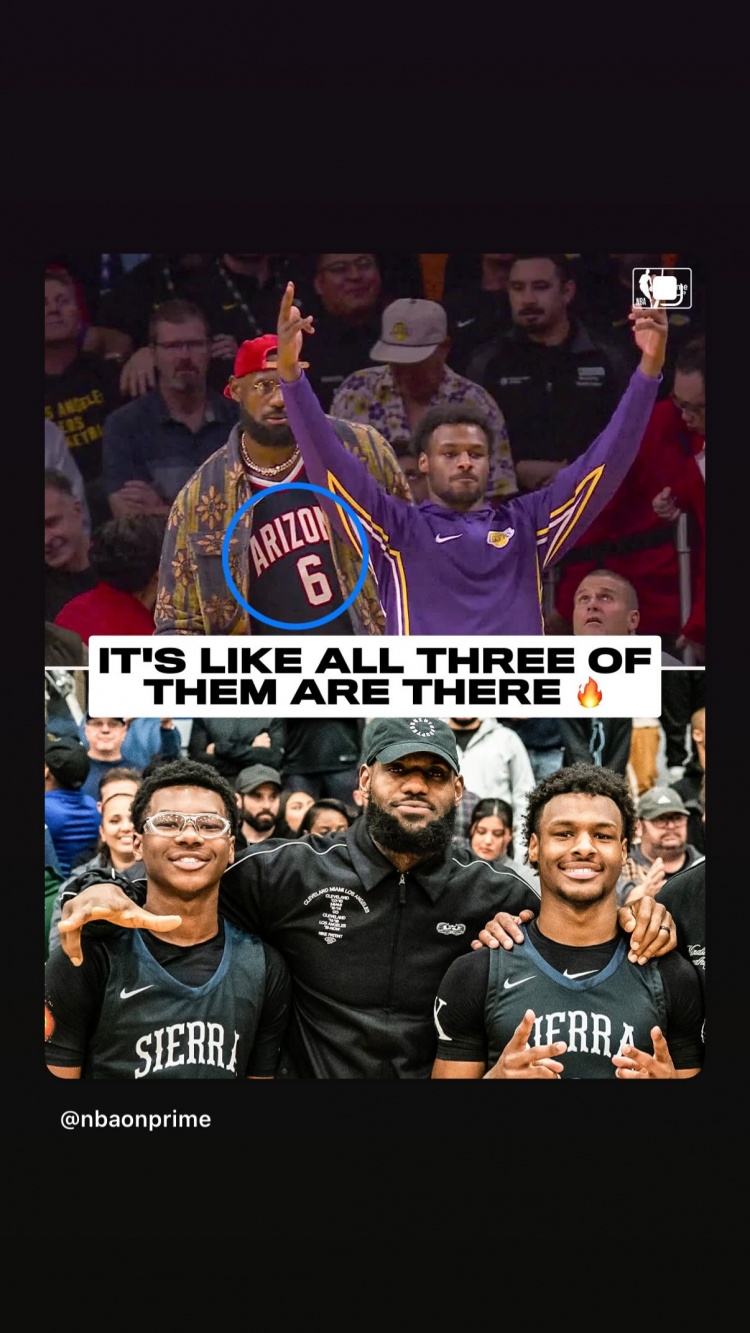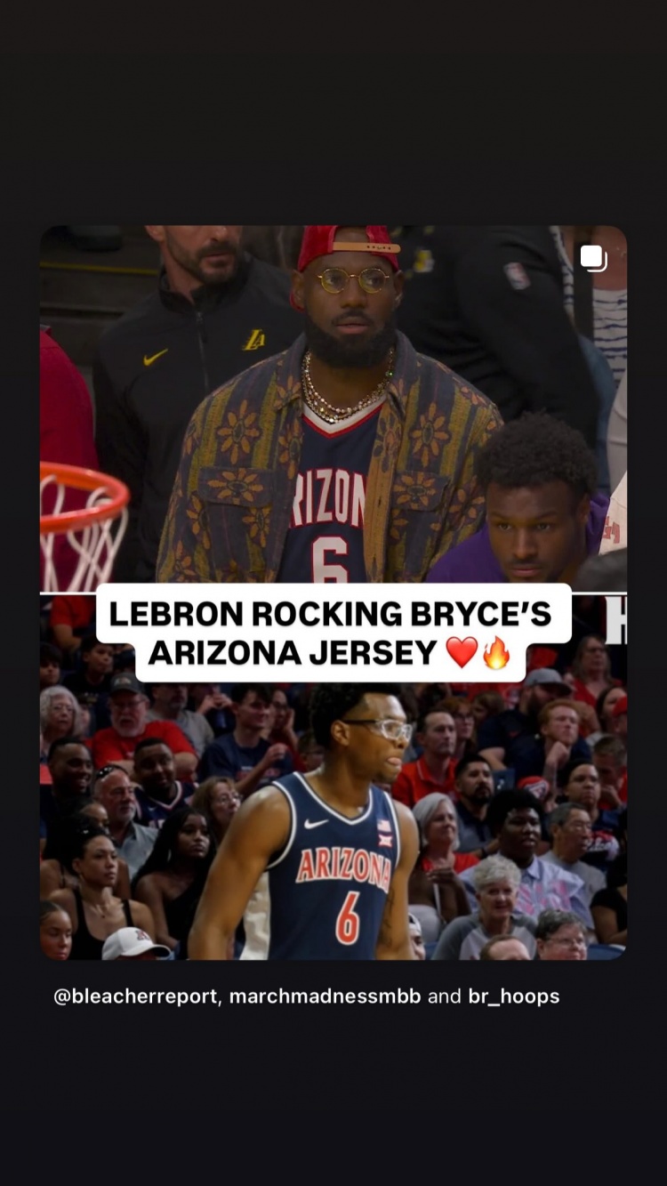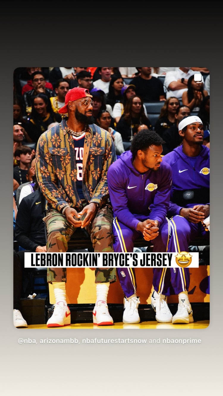 Yesterday, the Lakers played against the Timberwolves at home. James attended the game wearing his youngest son Bryce's jersey from the University of Arizona.