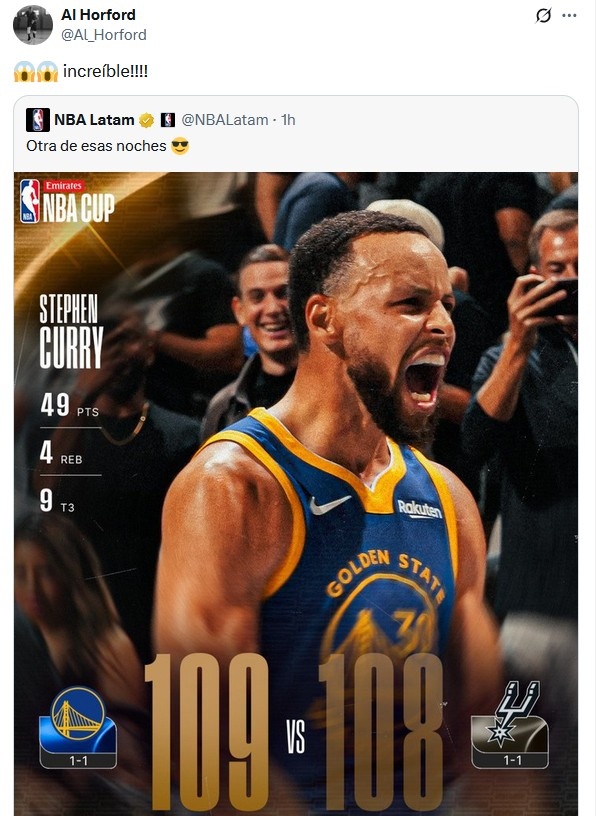 NBA Cup, the Warriors narrowly defeated the Spurs 109-108.