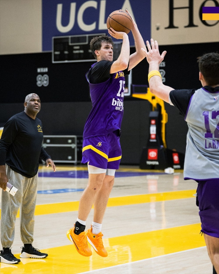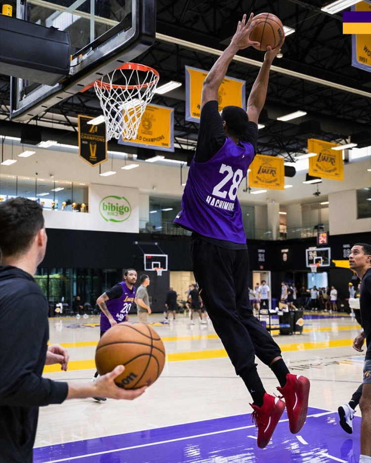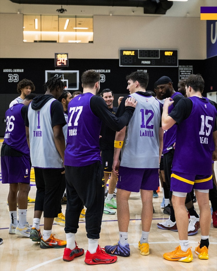 Today, the Lakers’ official Twitter released a set of team training photos.