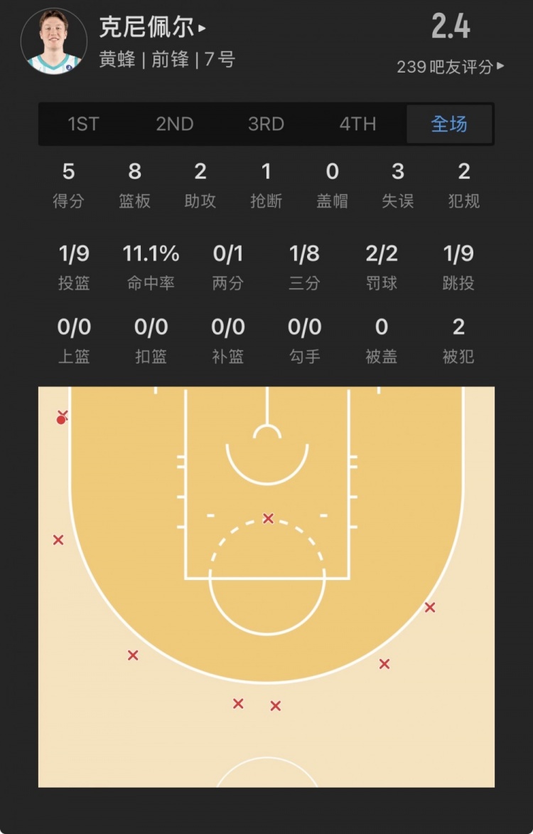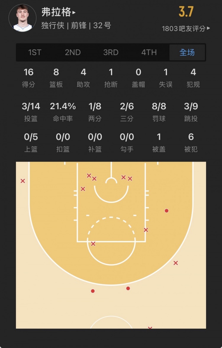 [Rookie] Flagg played guard with little success, scoring 16+8+4 on 3-of-14. The Hornets’ No. 4 pick was sluggish on 1-of-9.