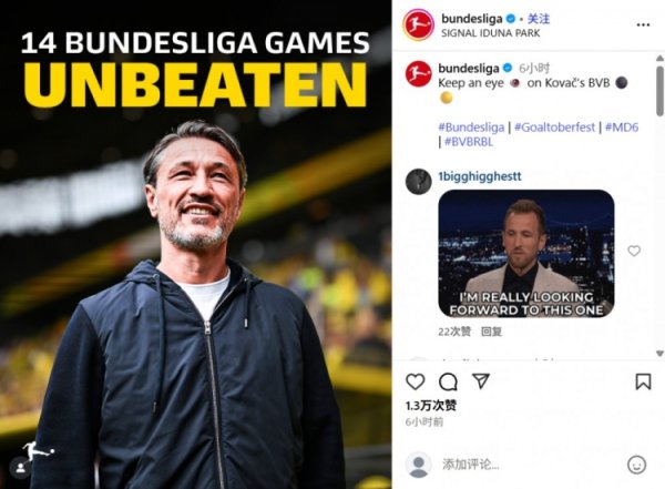 In this round of the Bundesliga, Dortmund 1-1 Leipzig. Dortmund coach Kovac has led the team to unbeaten in 14 Bundesliga games across the season. After the game, the Bundesliga official also posted a poster to report this data.