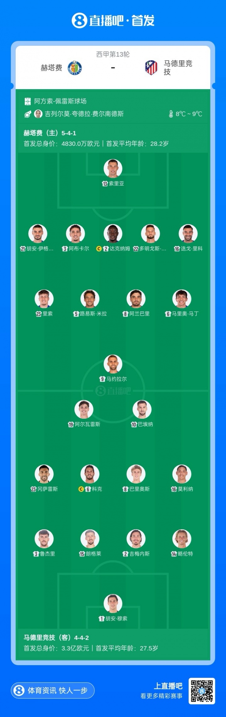 In the 13th round of La Liga, Atletico Madrid played against Getafe. The starting lineup was announced before the game.