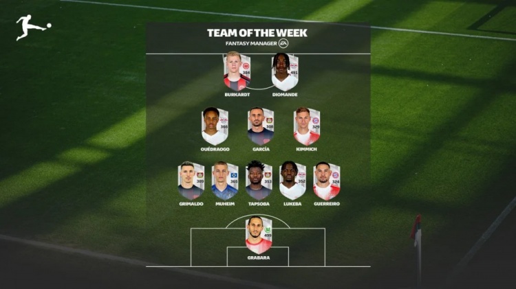 Bundesliga official 8th round best team: Leipzig Pharmaceuticals has 3 players each, including Kimmich and Burkart.