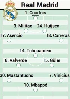 As predicts Real Madrid starts: Courtois, Militon, Heisen, Raul Asensio, Carreras, Joan Ammeni, Valverde, Guerre, Mastantono, Vinicius, Mbappe