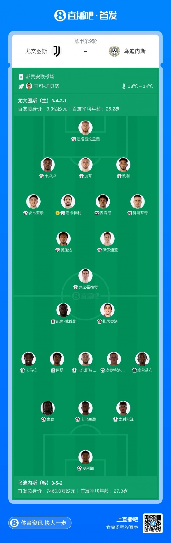In the 9th round of Serie A, Juventus faced Udinese, and the starting lineup was announced before the game.