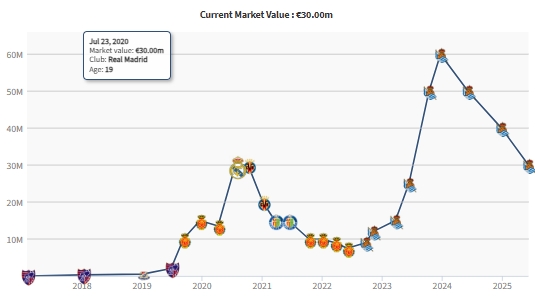 Kubo Jianying's peak value was as high as 60 million euros, but in the last three updates, he reduced his 10 million euros each time, and now he only has 30 million euros left.