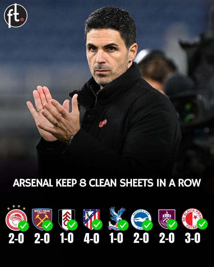 The Gunners have won ten consecutive games in all competitions and have kept clean sheets in eight consecutive games.