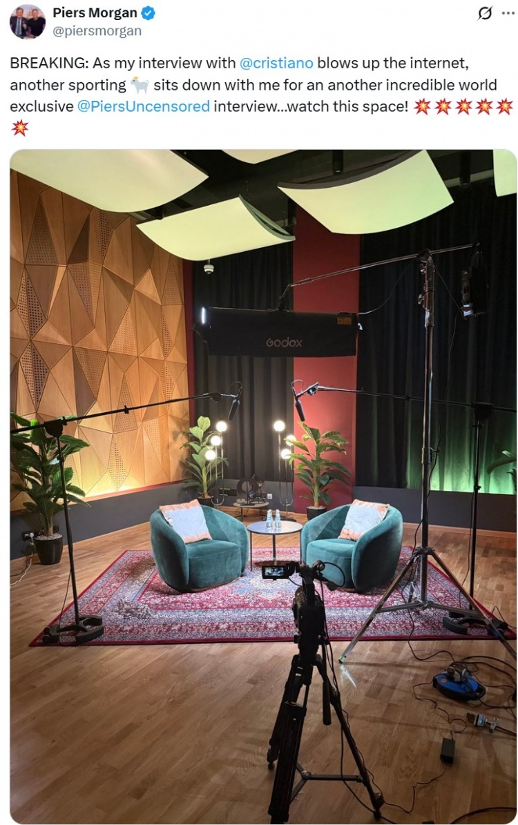 Morgan's social media wrote: "As my exclusive interview with Cristiano Ronaldo set off the Internet, another GOAT in sports will also come to my show for an exclusive interview. Take a look at the set photos first!"